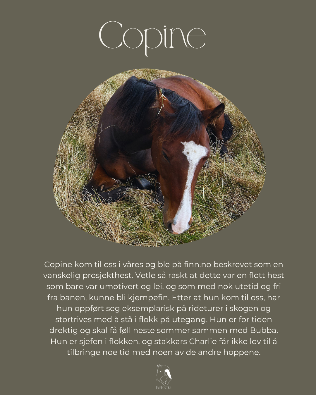 Bekkola er en nydelig gård på Finnskogen, to timer fra Oslo. Her arrangeres kurs, retreats og fellesskapssamlinger. I vårt nydelige tømmerhus har vi ni soverom, yogashala, stue med peis, hjemmekoselig gårdskjøkken, badstue og badestamp. Gården er omkranset med skog, og man kan blant annet vandre på Finnskogleden. Vi har seks hester og tilbyr trening og oppstalling av hest. Gårdens filosofi er inspirert av hesteflokken og dens pilarer er natur, tilstedeværelse og fellesskap.