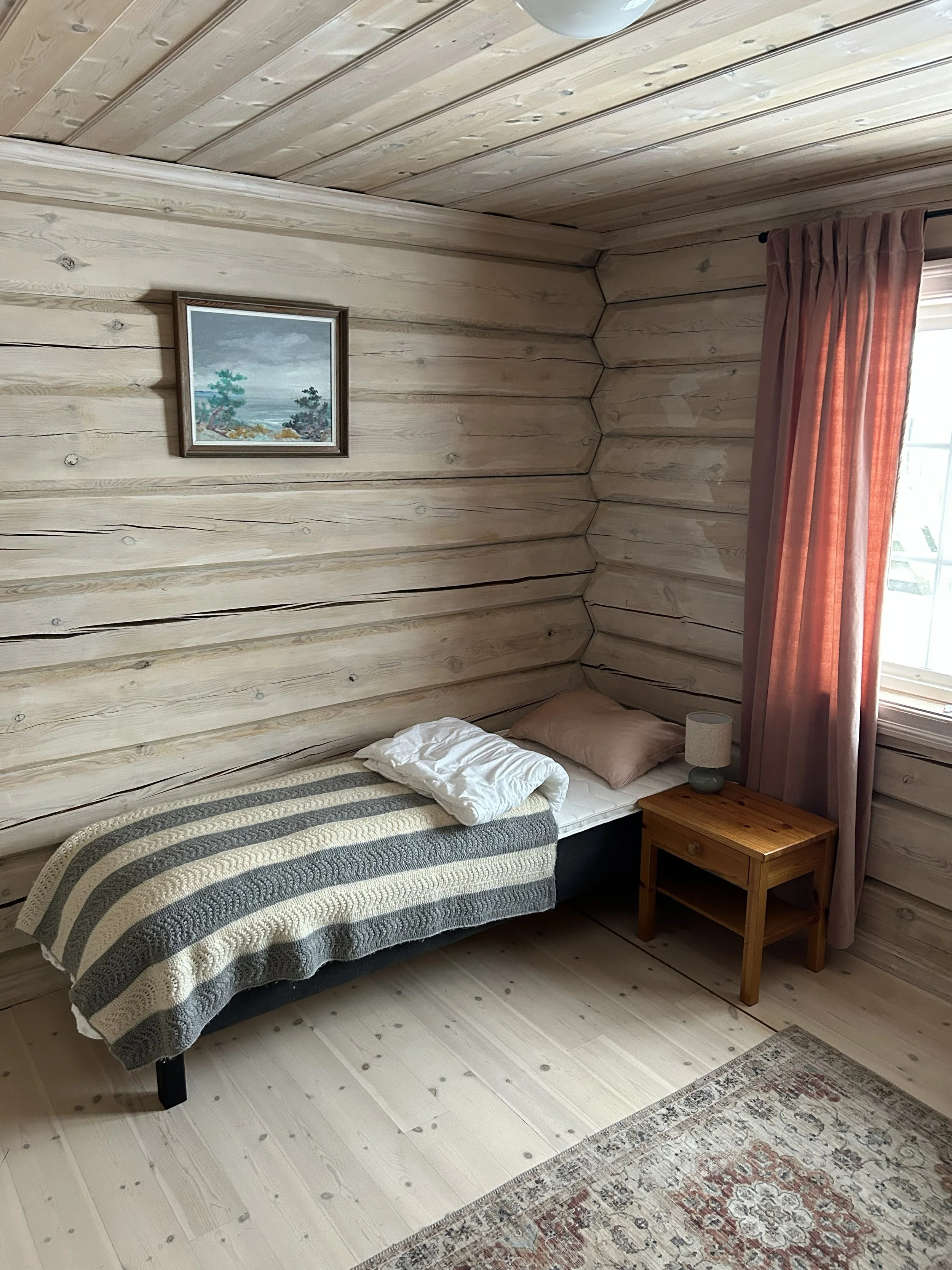 Overnatting i enkelt- eller dobbeltrom i et moderne, laftet tømmerhus. Det er lunt, varmt og hjemmekoselig