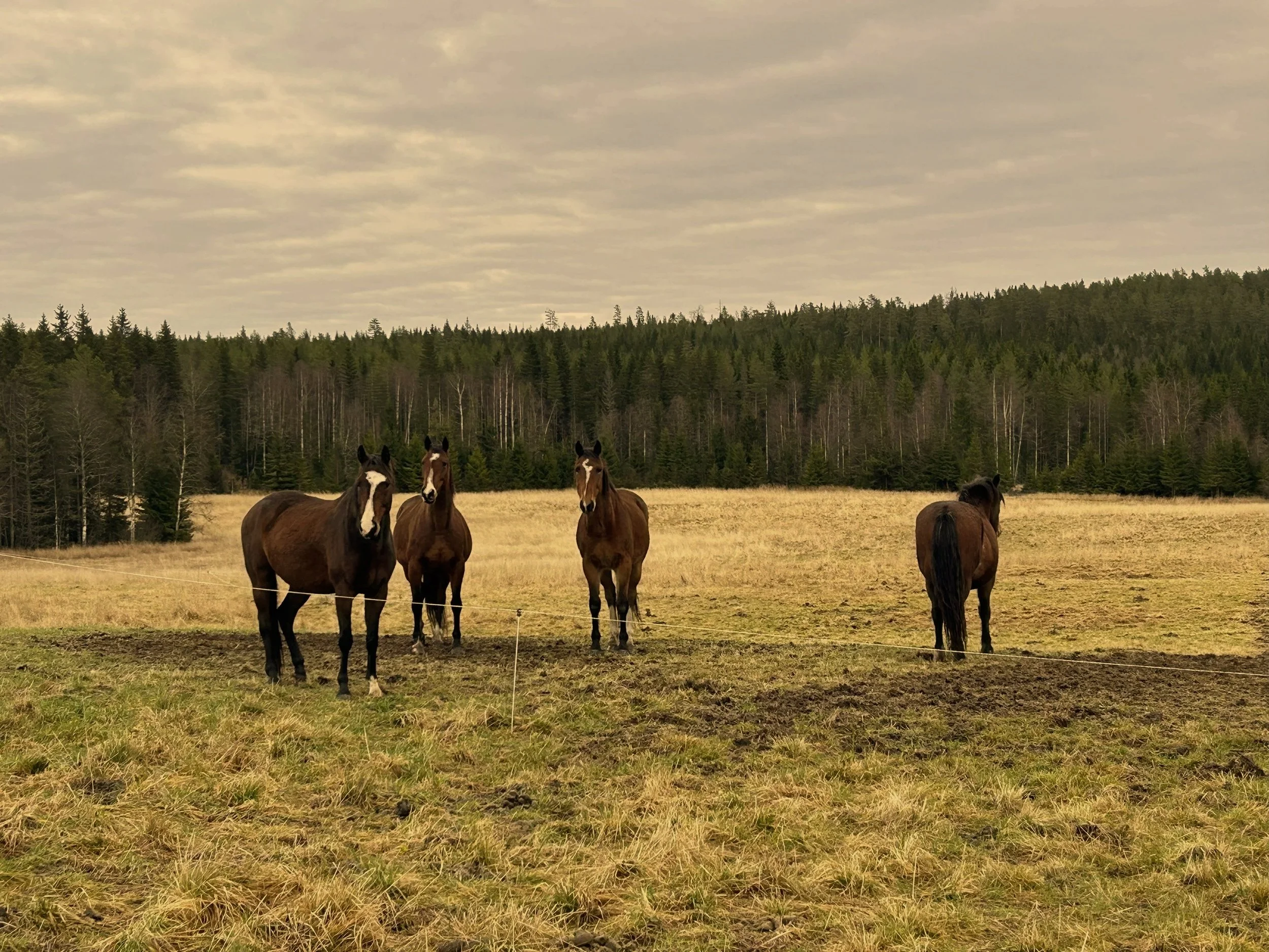 Vårt hestehold bygger på naturlige prinsipper. De fleste hestene våre går på utegang, med god plass og i flokk – fordi vi mener samvær med andre hester og fri bevegelse er avgjørende for trivsel og helse. Vi tror også at mye av treningen kan skje utenfor ridebanen, i variert terreng og naturlige omgivelser, for å bevare motivasjon, nysgjerrighet og glede.